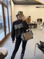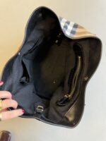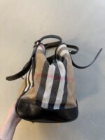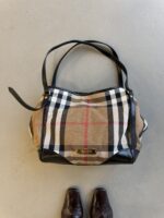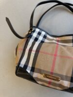 Vintage Burberry Canterbury tote in classic Burberry Haymarket checkered print. Cloth bag with black leather details and straps. Burberry golden metal logo plate on the front. Bag closes with a magnet. Comes with dust bag. Bag is in excellent condition, no real signs of use.
