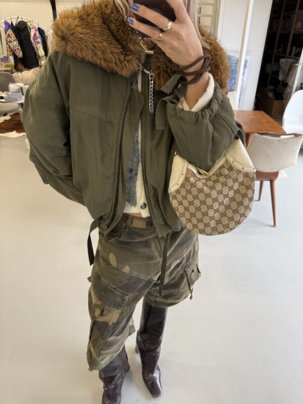 Signs of use: Bag is in amazing condition. No signs of use. Very light mark of glue along the edge on one leather part on the back of the bag (original glue from manufacturing the bag which colored a bit brownish after time). Very minimal and unnoticeable.