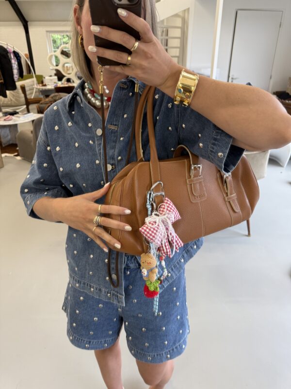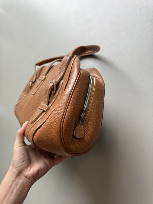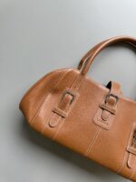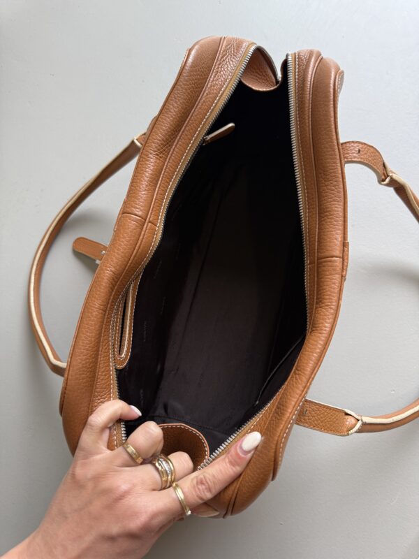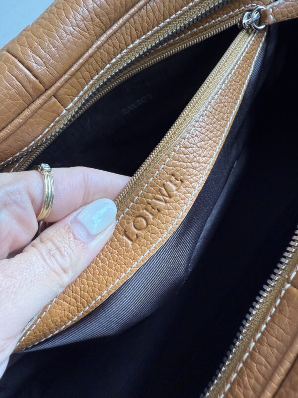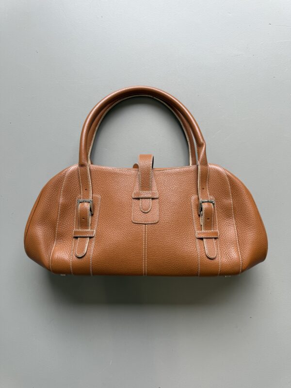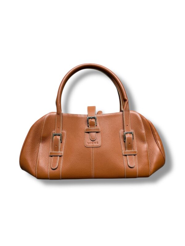 Vintage Loewe Leather Senda bag in camel. Shoulder bag with buckle details in silver metal and white contrast stitching. Matching leather straps. Bag closes with a zipper. Bag is in amazing condition. Very light signs of use on the corners and strap when looking very closely. No damages.