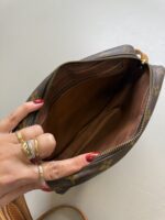 Signs of use: Bag is still in very good condition. Coated canvas is like new. Leather has some common signs of use as seen in the pictures (no broken or damaged parts). Big compartment inside is in perfect condition. Pocket on the back and inside are quite nice and clean.