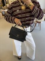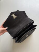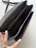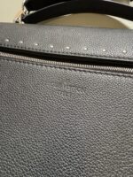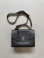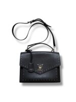 Brand new Louis Vuitton Mylockme bag in black calfskin leather with silver mini studs. Classic Louis Vuitton bag with flap and LV logo closure. Top handle to carry by hand and comes with extra crossbody strap. Bag is in new condition. Very light scratches can be found on the metal logo when looking very closely. Comes with box, dustbag and cards.