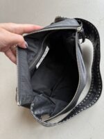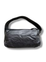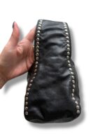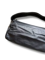 Vintage Miu Miu Black Leather Hobo shoulder bag with silver studded details on the sides and strap. Miu Miu logo embossed in the leather on the front. Amazing bag in amazing condition. No real signs of use. Leather has natural wrinkles.