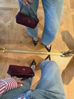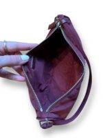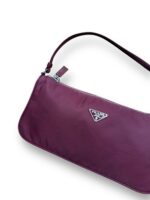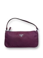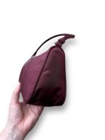 Vintage Prada Tessuto bag in amazing condition. Classic bordeaux nylon bag with nylon strap and silver hardware. Classic Prada Triangle logo on the front. Bag is in brand new condition, no signs of use.